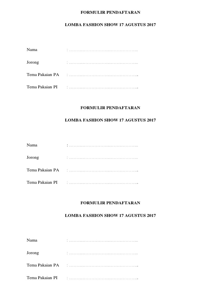 Contoh Formulir Pendaftaran Lomba 17 Agustus