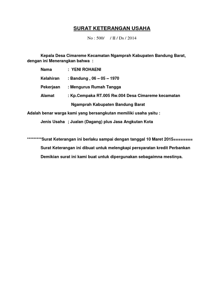 Contoh Surat Keterangan Usaha Dari Desa Doc Nusagates